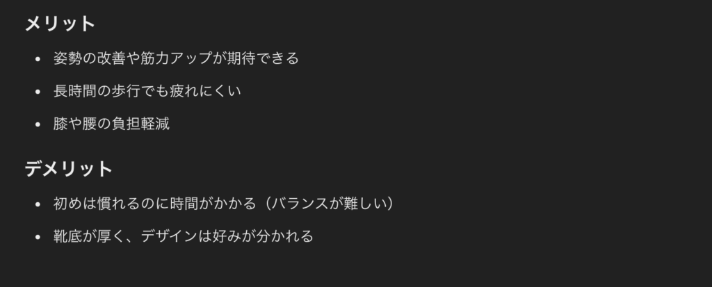 (口コミ等によると、履き慣れるまで違和感があるらしい)