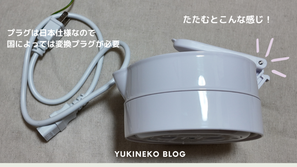 衛生面が気になるので、海外でも使える折りたたみの電気ケトルを持っていきました。